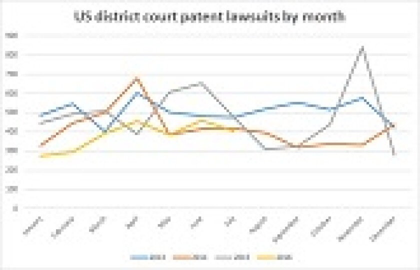 July patent litigation line chart 165